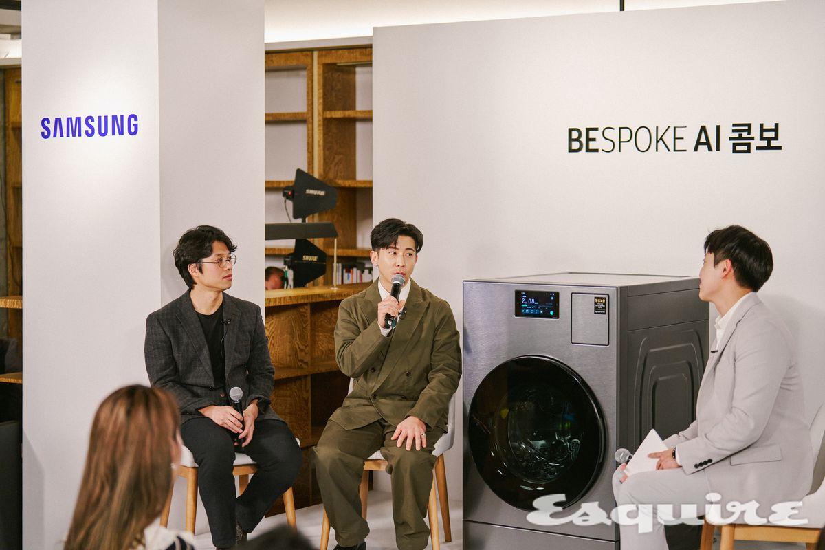 삼성전자와 클럽 에스콰이어의 협업 행사 '새로운 런드리 라이프 by 비스포크 AI 콤보'에 참석해 세탁과 비스포크 AI 콤보에 대한 이야기를 하고 있는 브라이언.