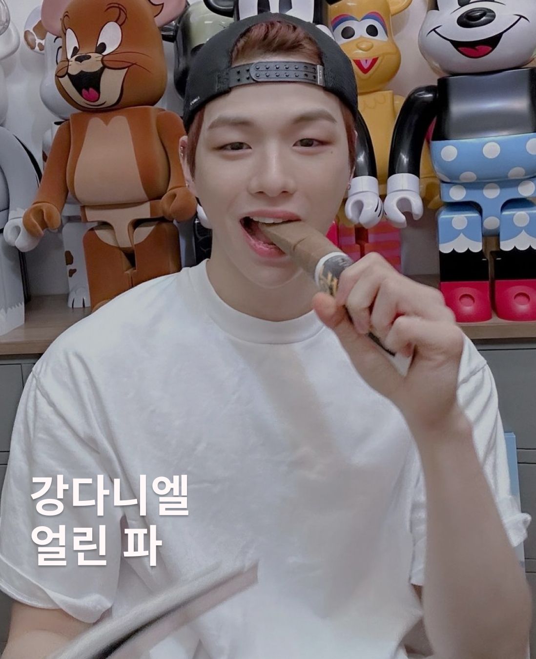 자극적인 음식을 좋아하기로 유명한 강다니엘. 파를 냉동실에 열려 아삭아삭 씹어 먹는다고 하죠. 심지어 통후추도 씹어 먹어 팬들을 놀라게 했습니다.