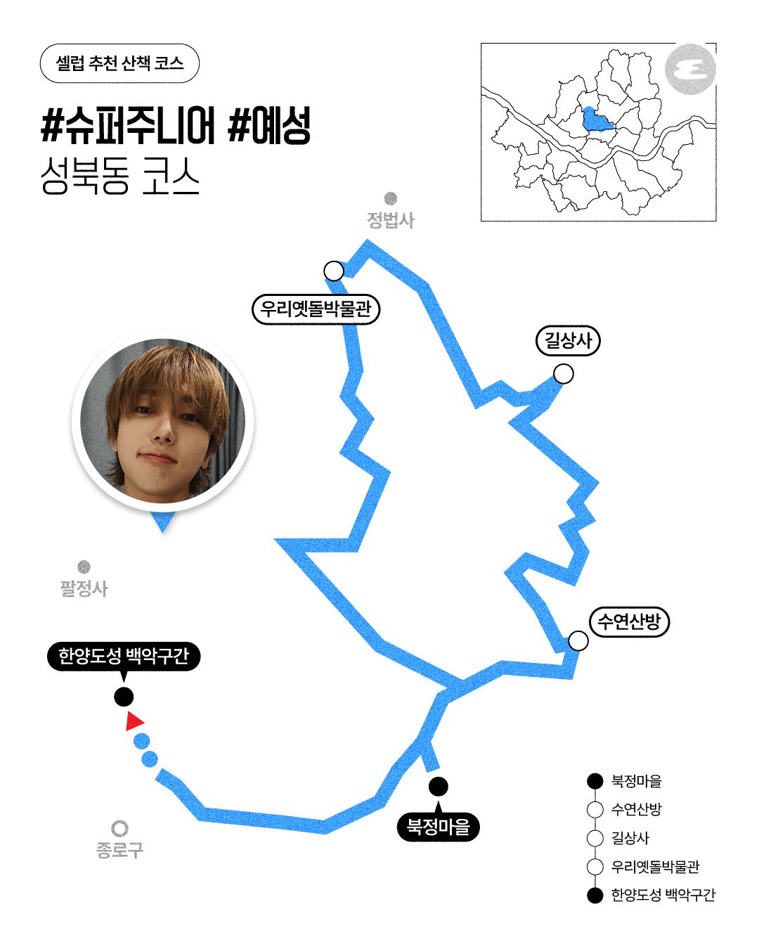 성북동 코스 | 북정마을 > 수연산방 > 길상사 > 우리옛돌박물관 > 한양도성 백악구간