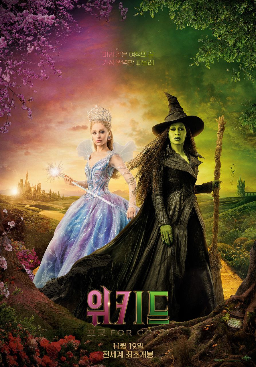 드디어 1년의 인터미션이 끝났다. 뮤지컬 <위키드>를 원작으로 한 영화 <위키드: 포 굿>이 11월 19일에 개봉한다. 지난해 개봉한 파트 1에 이어, 다른 길을 선택할 수밖에 없었던 사악한 마녀 ‘엘파바’와 착한 마녀 ‘글린다’가 진정한 우정을 찾아가는 이야기를 이어간다. 이번 파트 2의 관람 포인트는 파트 1과 마찬가지로 다채로운 볼거리에 있다. 신시아 에리보와 아리아나 그란데가 부르는 뮤지컬 넘버와 화려한 세트를 감상하다 보면 137분의 러닝타임이 금새 지나 있을 것이다.