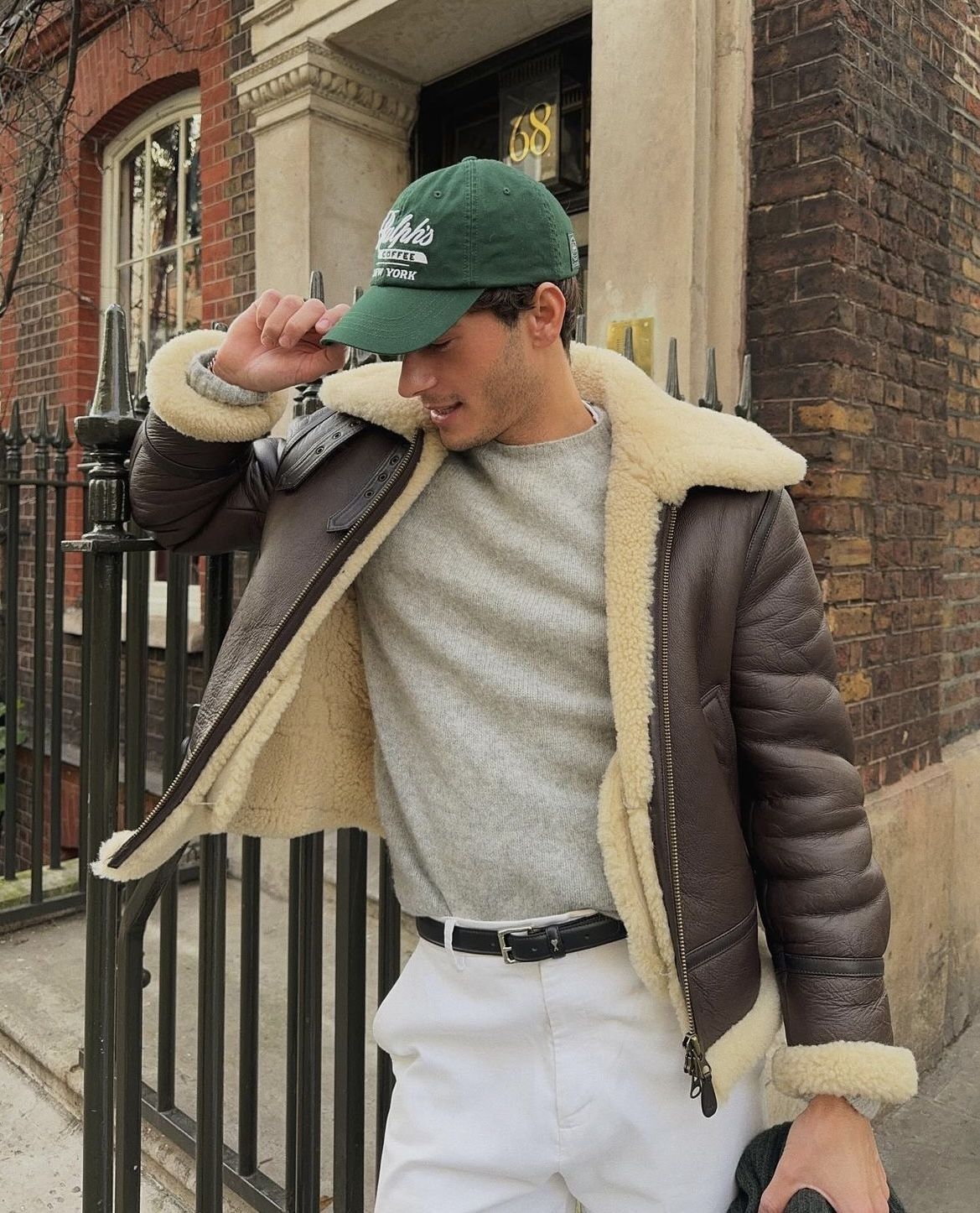 시어링 재킷의 남성미가 과하게 느껴진다면 심플한 캡 하나를 섞어보자. 캡이 가진 캐주얼한 무드가 무게감은 덜어내 주고 경쾌함을 더 할 것이다. 또렷하고 존재감 있는 색이라면 효과는 더 확실하다. 헤어스타일에 따라 깊게 눌러쓰거나, 헤어라인이 자연스럽게 드러나게 걸쳐 쓰는 것도 자신의 스타일을 표현하는 좋은 방법이 될 테니까.