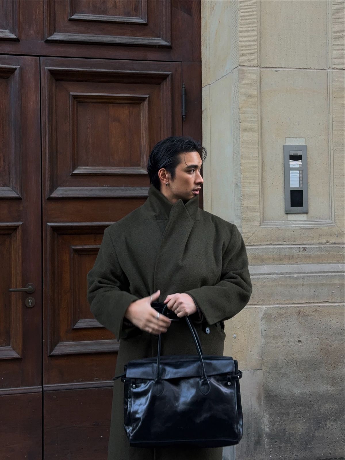 분위기 있는 레스토랑에 약속이 잡혔다면, 과함은 덜어내고 실루엣과 컬러에 집중해 보자. 짙은 브라운과 카키 컬러와 같은 롱 코트에 톤 다운된 울 팬츠만으로도 충분히 정돈된 인상이 완성된다. 다만 레스토랑에 들어섰을 때 분위기를 전환하고 싶다면, 이너로 컬러감 있는 니트를 선택해 보자. 짙은 아우터와 대비를 이루며 자연스러운 반전을 만들어준다. 백은 군더더기 없는 실루엣의 미니멀한 가죽 백과 첼시 부츠나 묵직한 더비 슈즈를 매치하면 조용하고 섬세한 분위기가 살아난다. 여기에 우디 계열 향수 한두 번이면, 연말의 순간을 오랫동안 기억하게 될 것이다.
