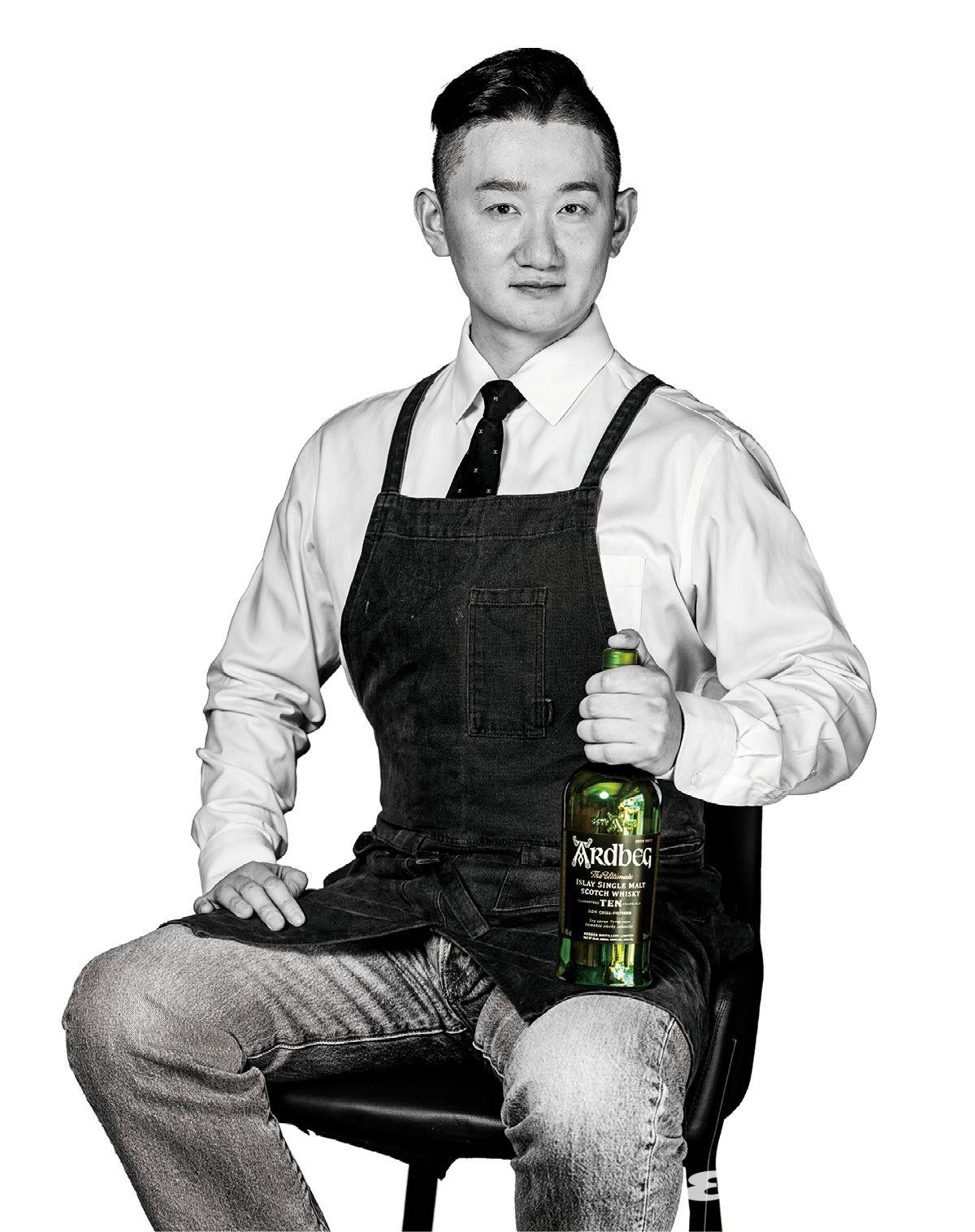 위스키는 계절적으로는 겨울이에요. 날씨가 추워지면 위스키를 쓰죠. 풍미로 본다면 복합미를 더하고 싶을 때 주로 사용해요. 그중에서도 아드벡은 특별하죠. 다크 럼에 아드벡을 살짝만 더해도 달콤함과 스모키한 뉘앙스가 어우러지면서 복합미가 확 살아나거든요. 아드벡은 스프레이로 뿌리기만 해도 복합미를 북돋을 수 있어요. 또 감칠맛이 필요할 때도 아드벡이 최고입니다.