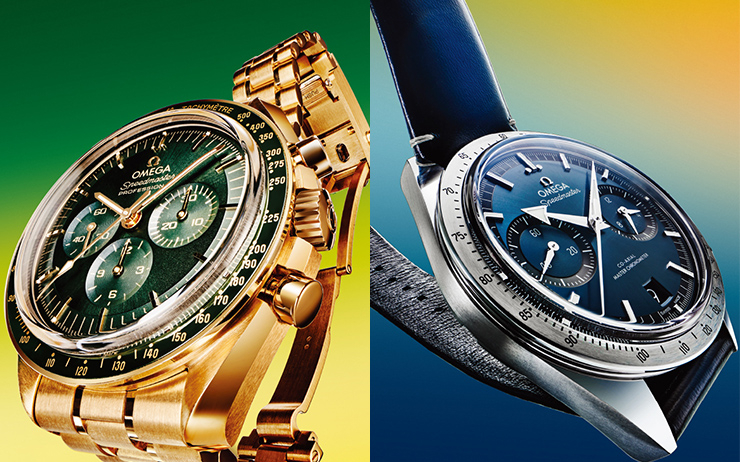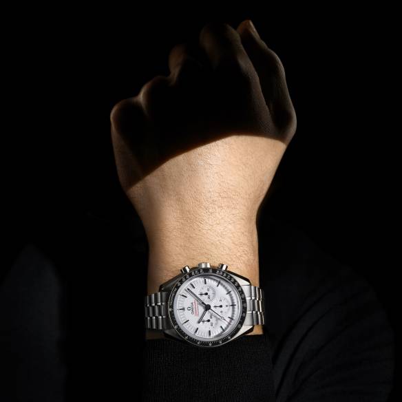 문워치의 익숙하지만 새로운 변화. 스피드 마스터가 블랙 & 화이트 다이얼 제품을 선보였다. 달에서 착용한 4세대 문워치에서 영감을 얻었다.