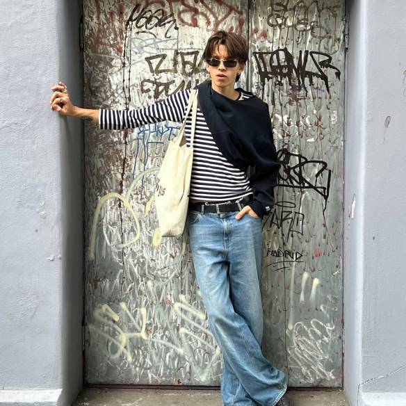 역시 발렌시아가는 데님 재킷도 존재감을 발합니다. 아이코닉한 오버사이즈 실루엣과 과감한 볼륨감으로 구조적인 패턴을 선보이죠. 심플한 티셔츠 위에 이 재킷 하나만 걸쳐도 스타일을 단번에 바꿔주는 아이템입니다.