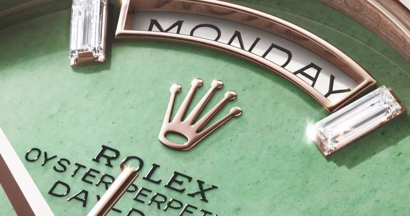 화이트 골드 플루티드 베젤과 그린 래커 옴브레 다이얼이 조화를 이루어 여름철에 걸맞은 시원한 인상을 완성한다 / 이미지 출처 : 롤렉스