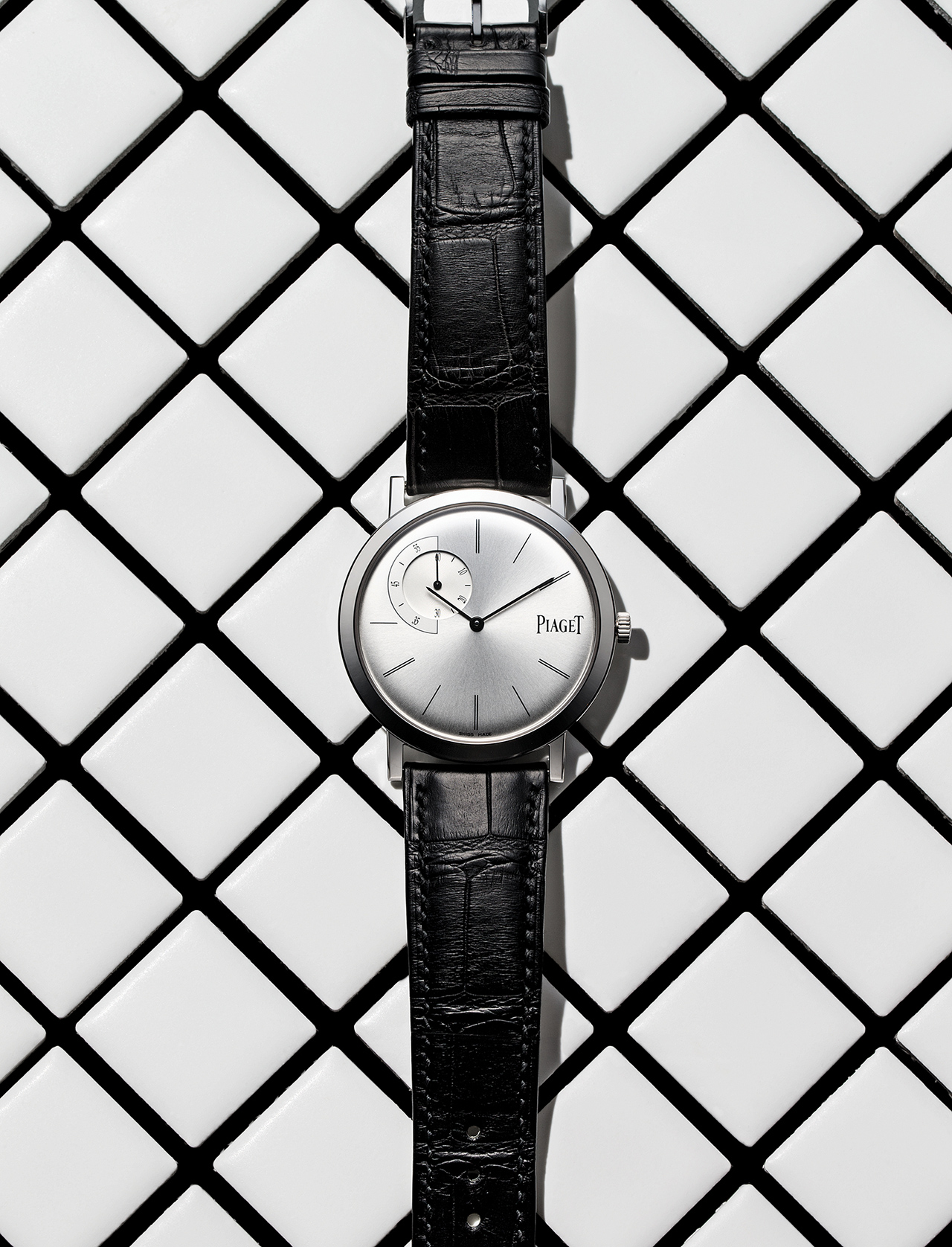 화이트 골드 케이스와 실버 다이얼을 써서 드레스 시계의 기본을 지켰는데도 섹시한 느낌이 난다. 보통 6시 방향에 두는 독립 초침을 11시 방향에 둔 것도 피아제만의 재치다. 작은 시도 덕분에 피아제가 크게 남달라 보인다.