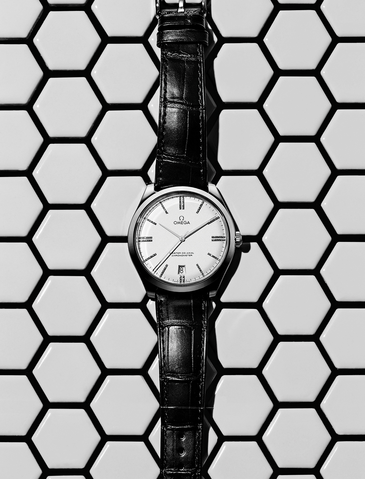 오메가에는 드 빌이라는 드레스 워치 라인업이 있다. 시계와 밴드를 이어주는 부분인 러그를 뭉툭하게 처리해 육각형 느낌이 난다. 복고적인 느낌을 주는 뭉툭한 육각형 케이스가 드 빌의 정체성이다.