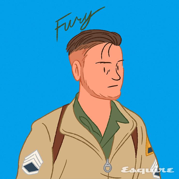 Barber Says 영화 <퓨리> 속 브래드 피트의 스타일을 연출하고 싶다면 머리가 적당히 수분을 머금은 상태에서 매트한 포마드를 도포한다. 그러고는 빗으로 윗머리를 쓸어 넘긴 뒤 조금 흩트린다.