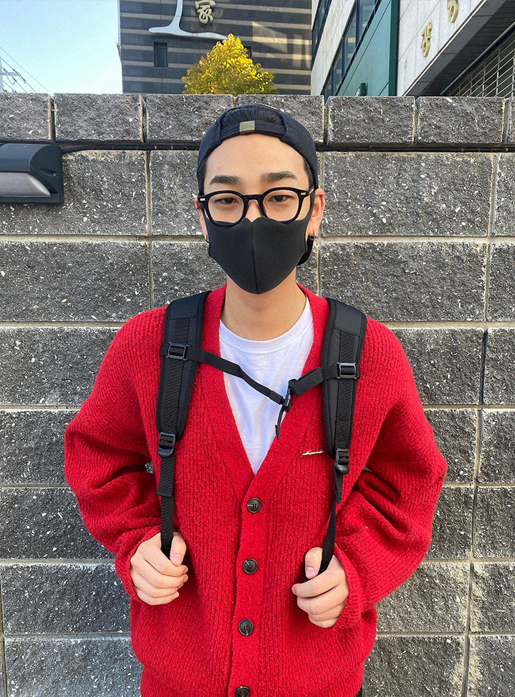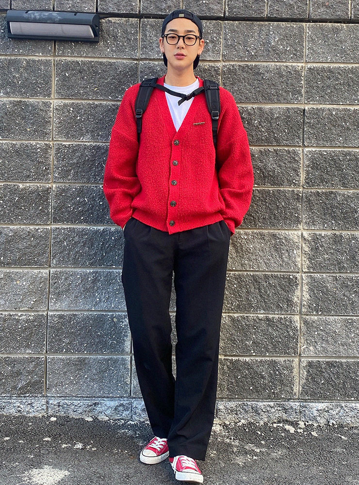 가을 단풍잎이 생각이 나는 레드 가디건.