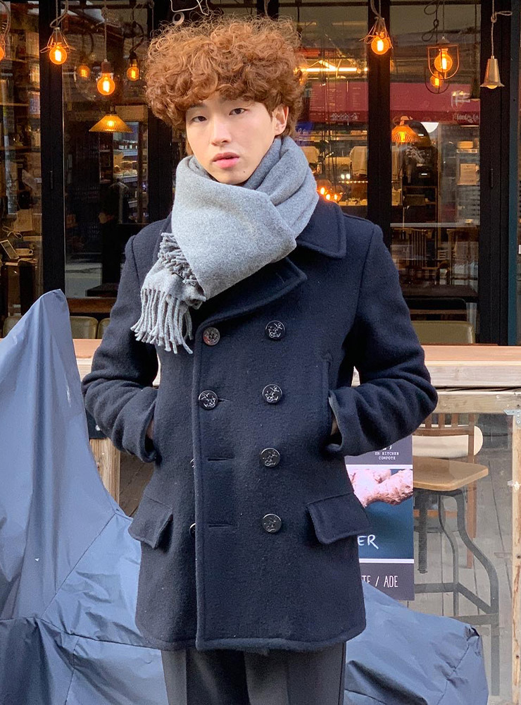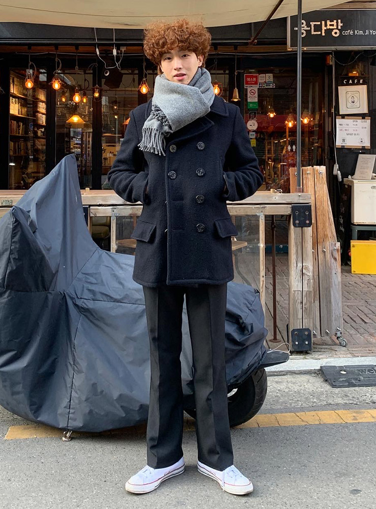 따뜻한 봄이 오고 있다고 해도, 갑작스러운 손님 ‘꽃샘추위’를 맞이할 준비도 같이 하여야 하죠. 모델 김원기는 겨울과 봄의 경계 그리고 꽃샘추위가 있는 3월, 차가운 바람을 막을 수 있도록 디자인된 피코트 코디를 선보였어요. 슬림하게 떨어진 핏의 피코트로 시크한 느낌은 물론 클래식한 무드까지 같이 챙겼네요. 단추를 풀어서 입어도 좋지만 완전히 클로징해 격식을 갖춘 스타일까지 연출해볼 수도 있죠.