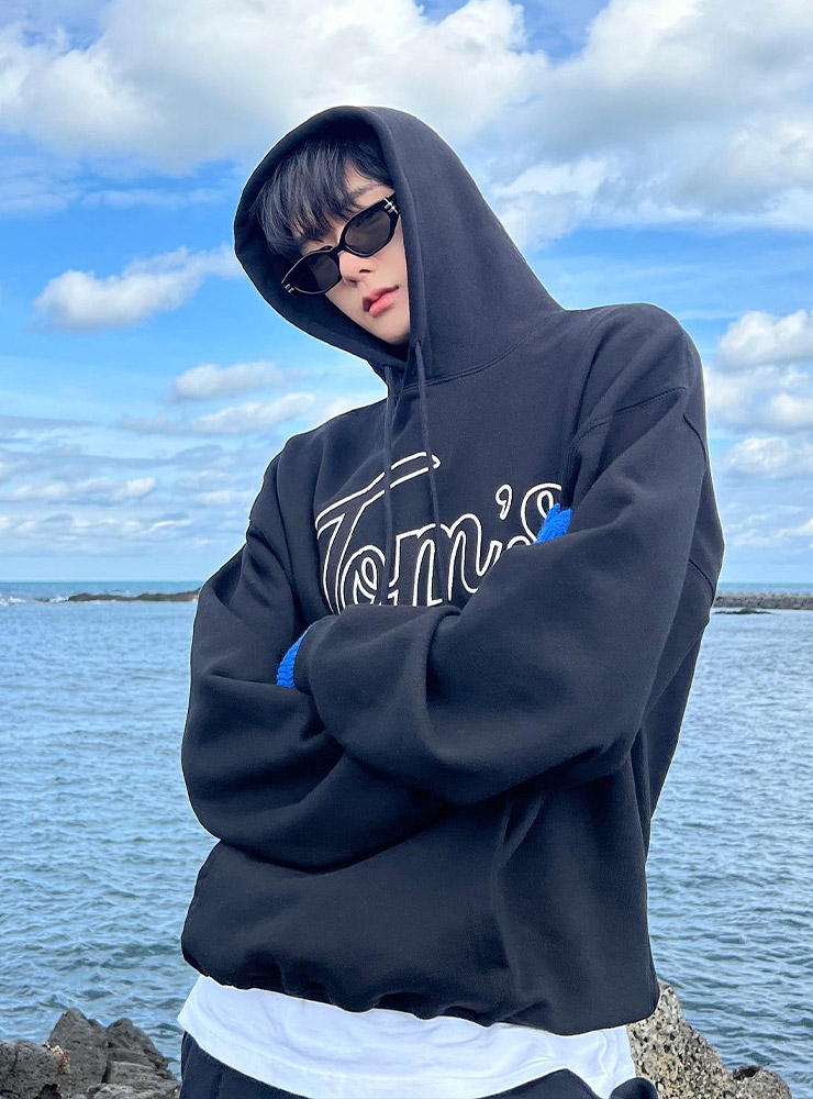 꾸민 듯 안 꾸민 듯한 내추럴한 후드티를 코디하는 가장 쉬운 방법, 바로 단독으로 입거나, 레이어드해서 입는 것이죠. 하지만 모두가 똑같이 입는 무채색 컬러의 진부한 후드티 코디는 이제 그만! 포인트 컬러를 더하는 방법으로 색다른 후드티 코디를 연출해보세요. 모델 임재완은 편안한 착용감은 기본, 어디에든 코디하기 좋은 오버핏 사이즈의 블랙 후드와 팬츠에 흰색 티셔츠로 레이어링을 하고, 쨍한 블루 컬러의 장갑으로 포인트를 주었어요.