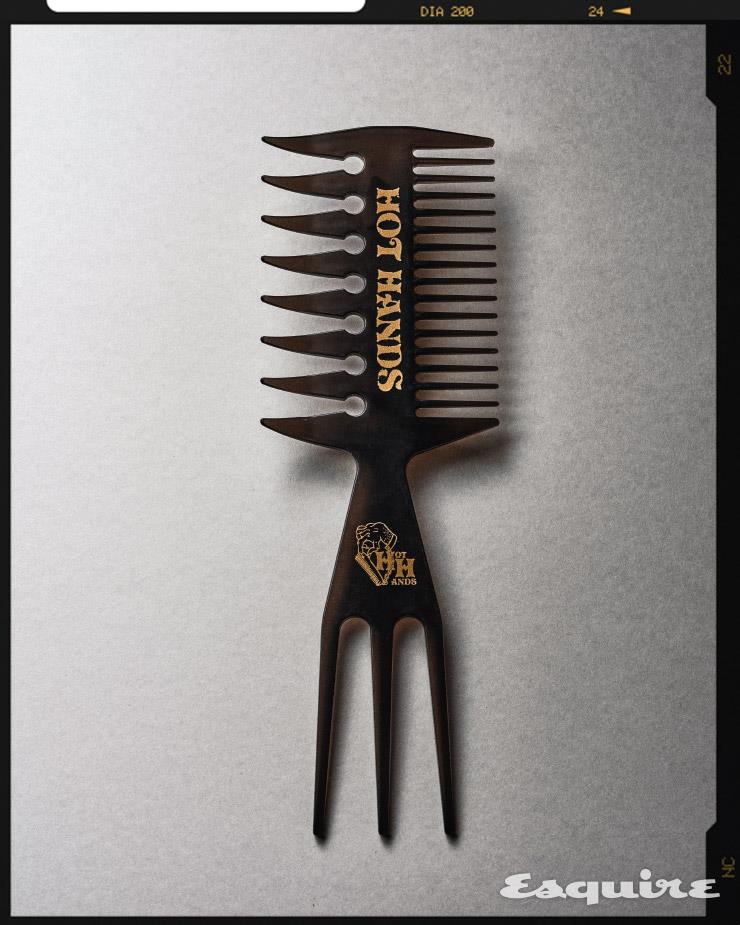 세 가지 빗살이 장착된 빗. 형태는 좀 요상하지만 사용법을 익히고 나면 이보다 콤팩트한 스타일링 툴이 없다. 빗 하나로 수십 가지 셰이프와 분위기를 연출할 수 있으니까. 결을 정돈할 때는 오른쪽의 기본 빗살, 볼륨을 더할 때는 왼쪽의 성긴 빗살, 머리칼 가닥가닥에 텍스처나 흐름을 표현할 때는 아래의 삼지창처럼 생긴 빗살을 활용한다. 스타일링 멀티 콤브 1만7000원 핫핸즈.