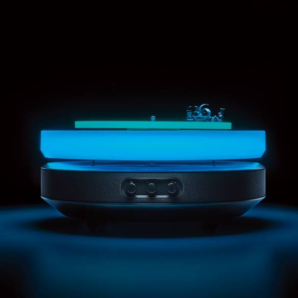 공중에 떠서 오묘한 빛을 내는 올인원 턴테이블의 정체