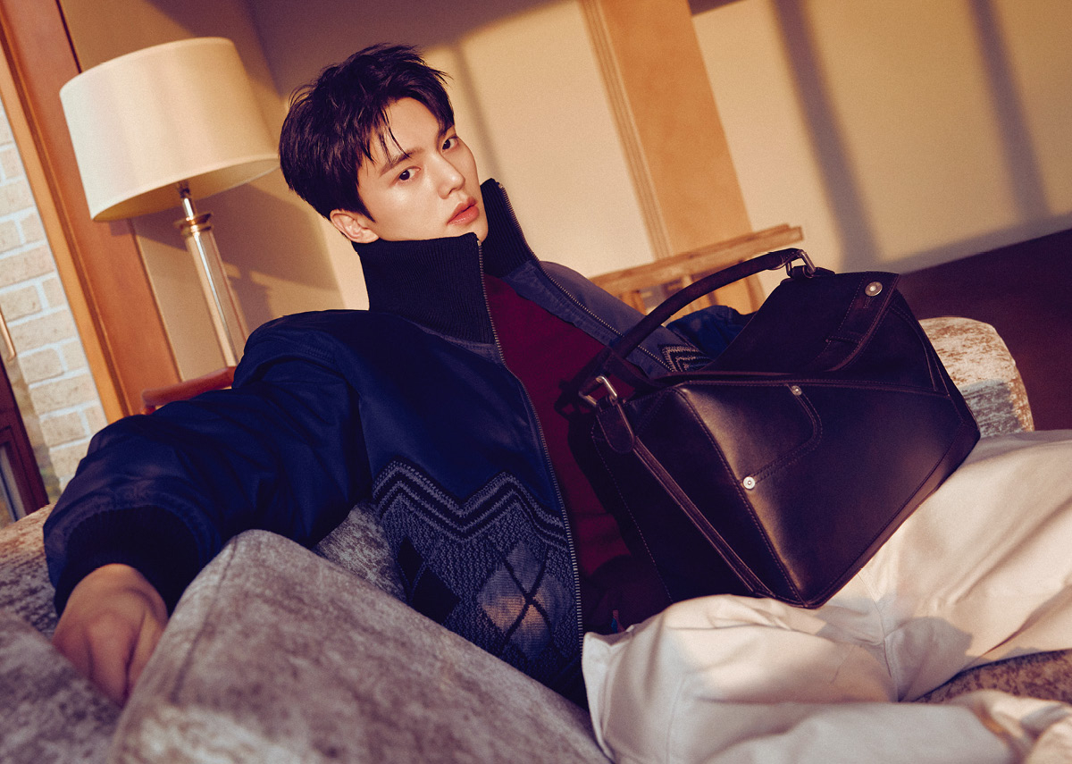 블루종, 스웨터, 팬츠, 백 모두 로에베.
