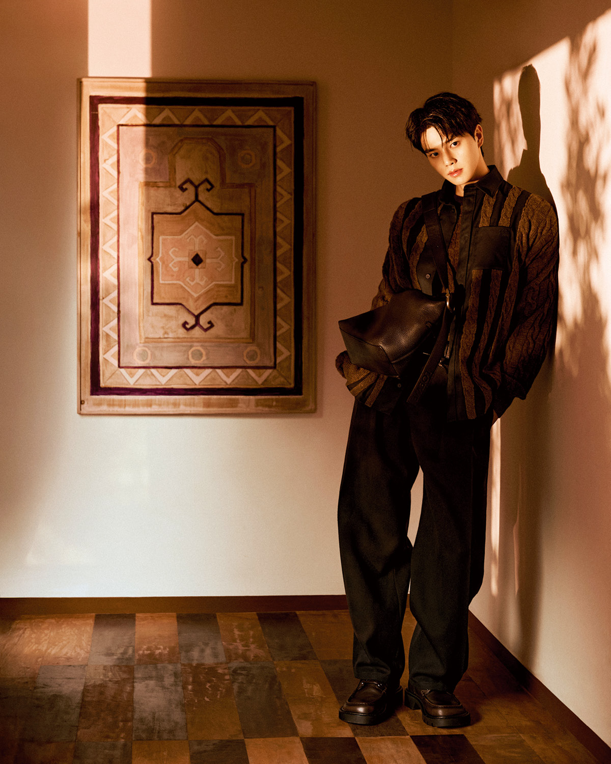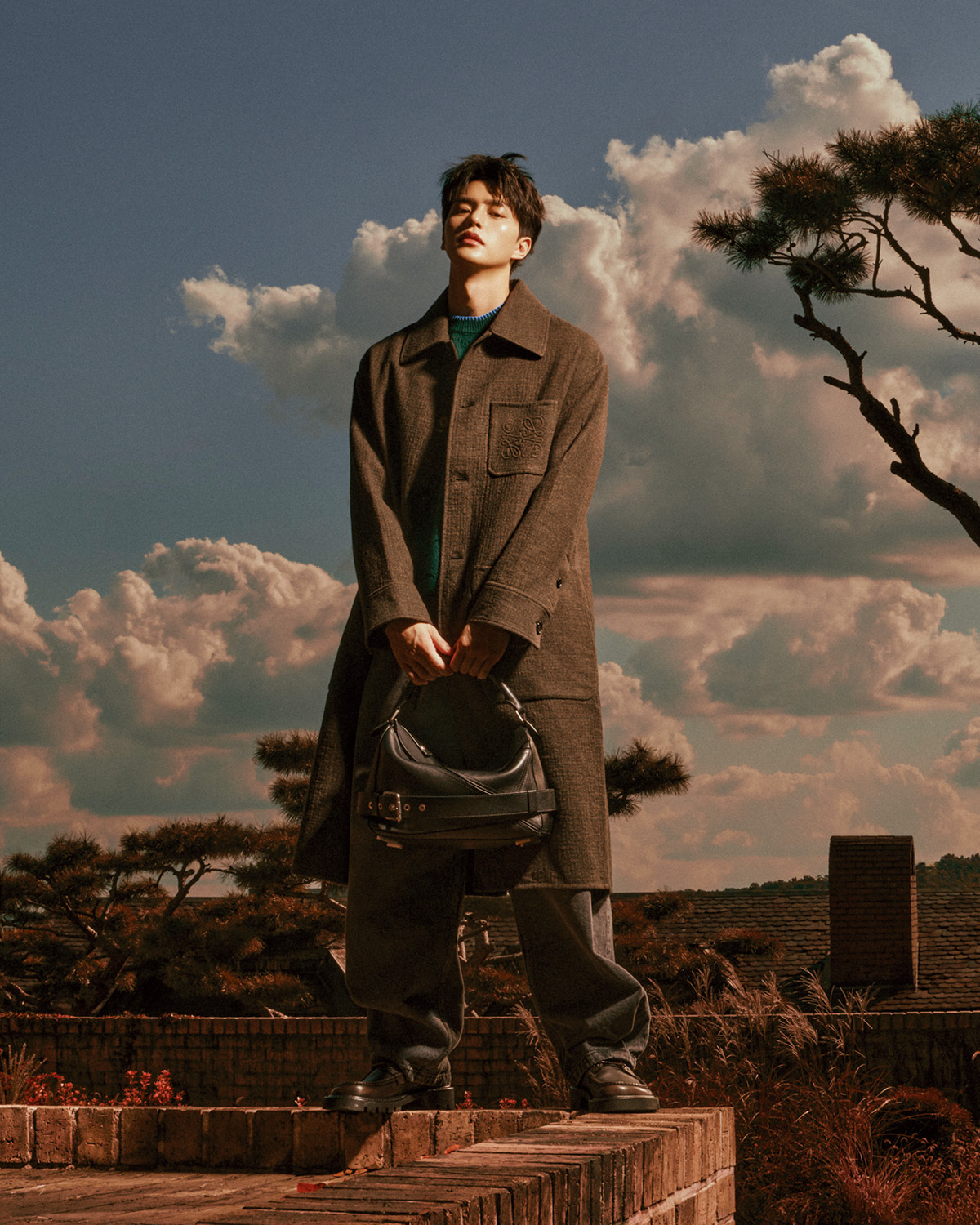 코트, 스웨터, 팬츠, 슈즈, 백 모두 로에베.