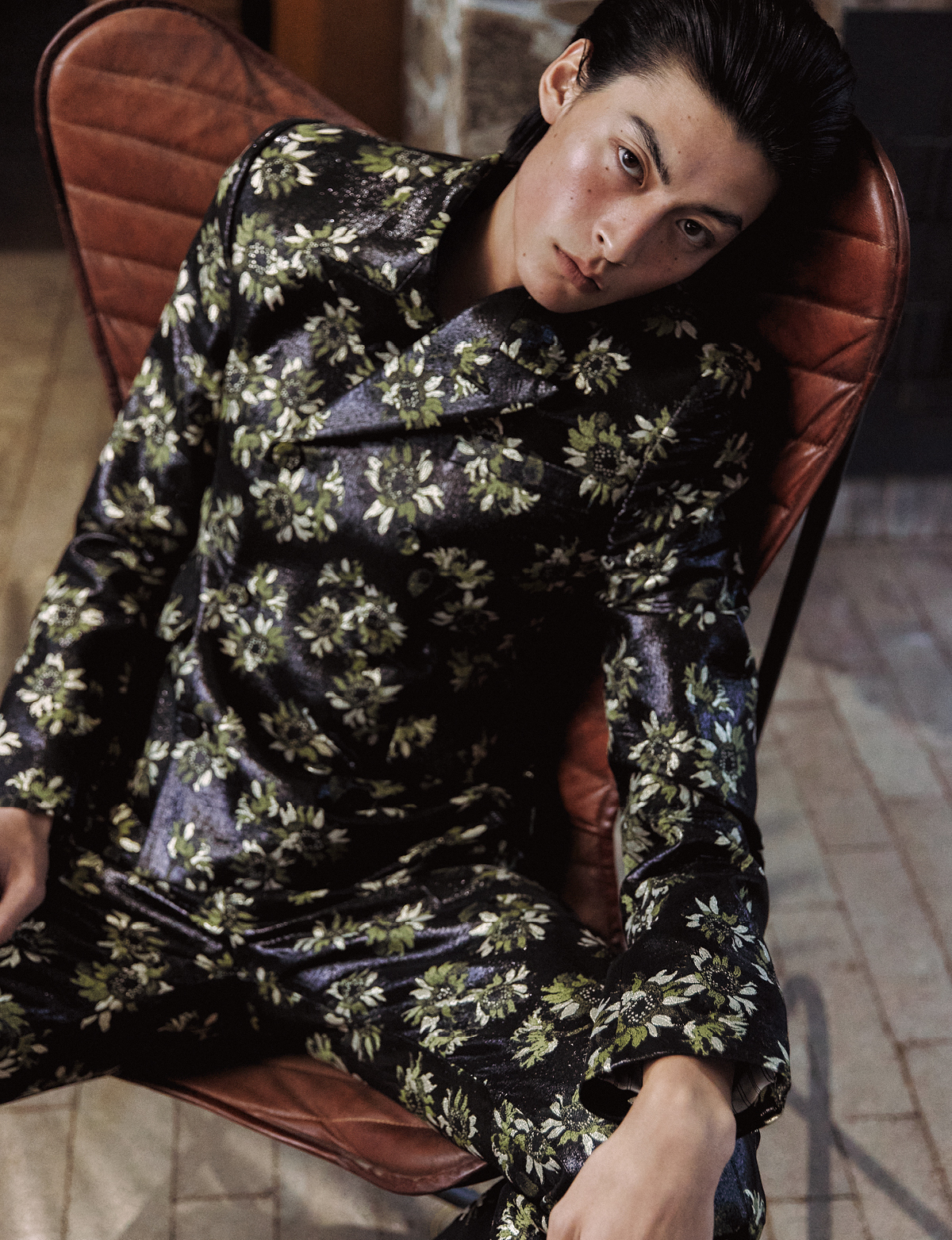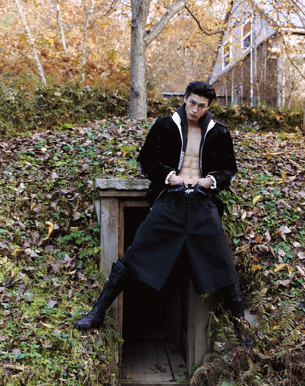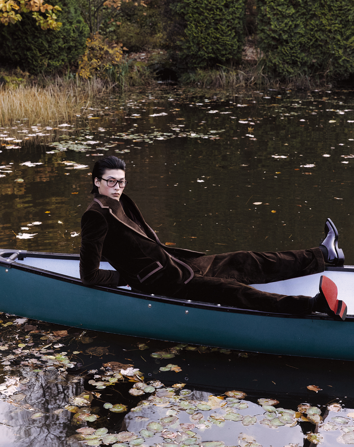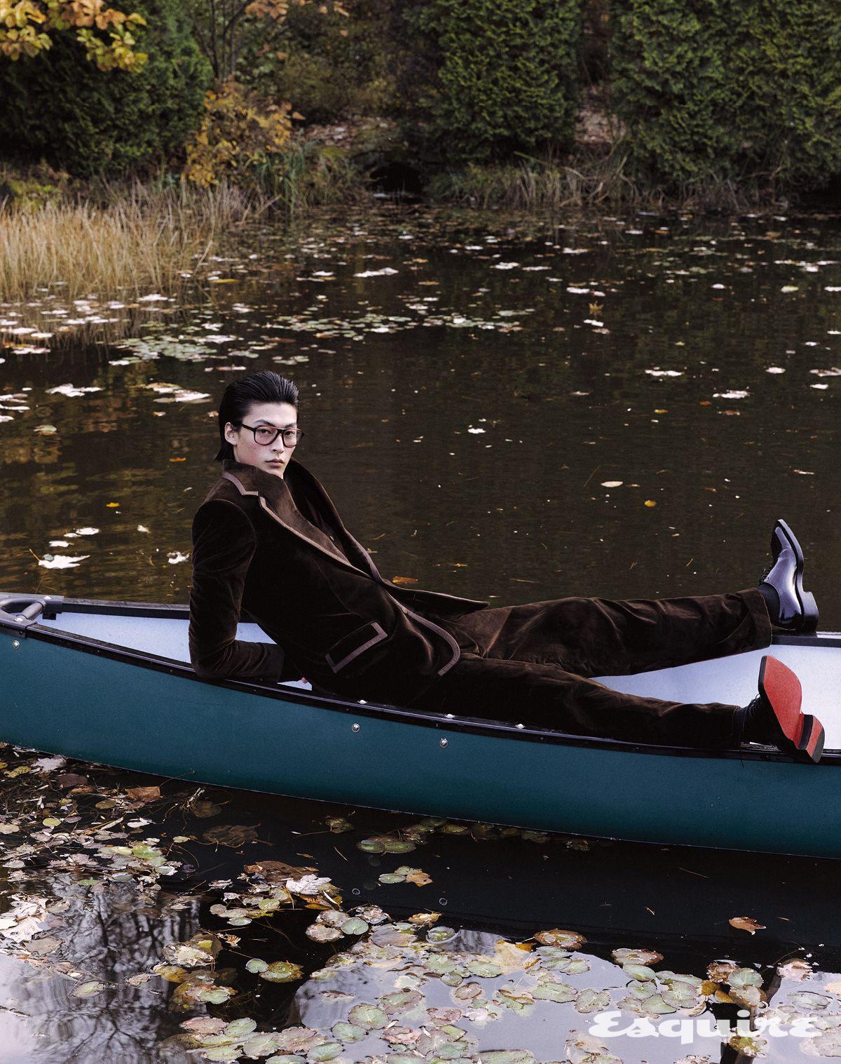 벨벳 싱글브레스티드 재킷, 베스트, 스웨터, 스무드 벨벳 팬츠 모두 가격 미정 돌체앤가바나. 레이스업 슈즈 가격 미정 크리스찬 루부탱. 안경 54만2000원 올리버피플스 by 에실로 룩소티카.