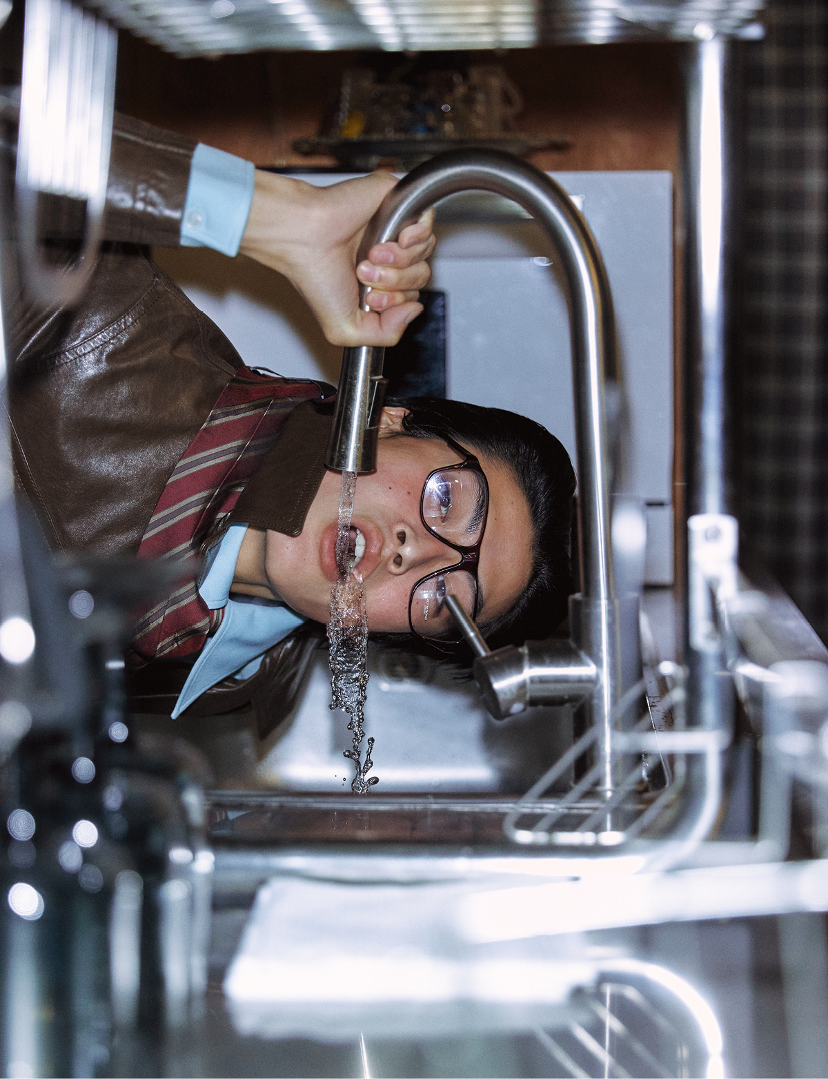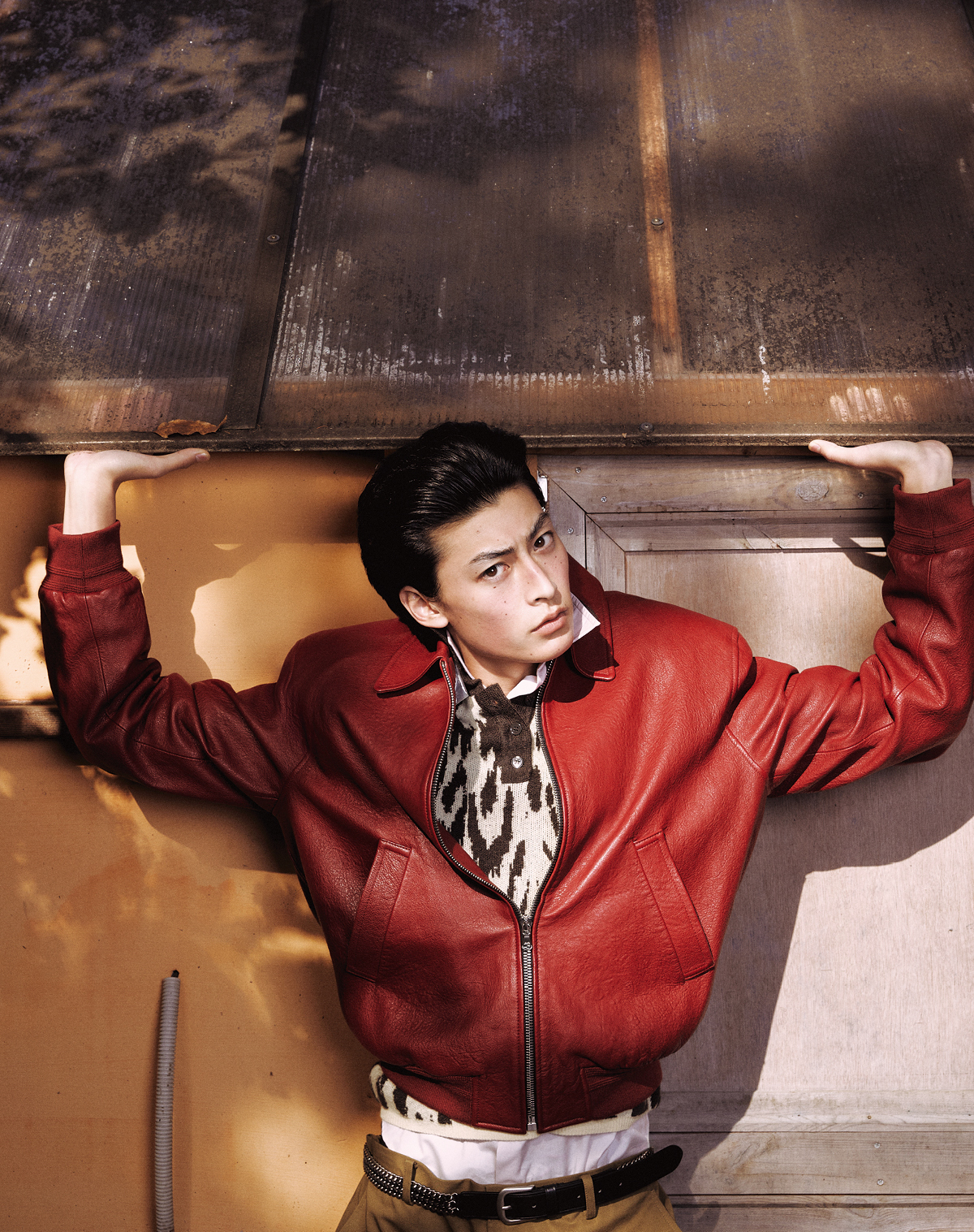 레더 헌팅 재킷, 셔츠, 타이 모두 가격 미정 아미리. 안경 54만2000원 올리버피플스 by 에실로 룩소티카.