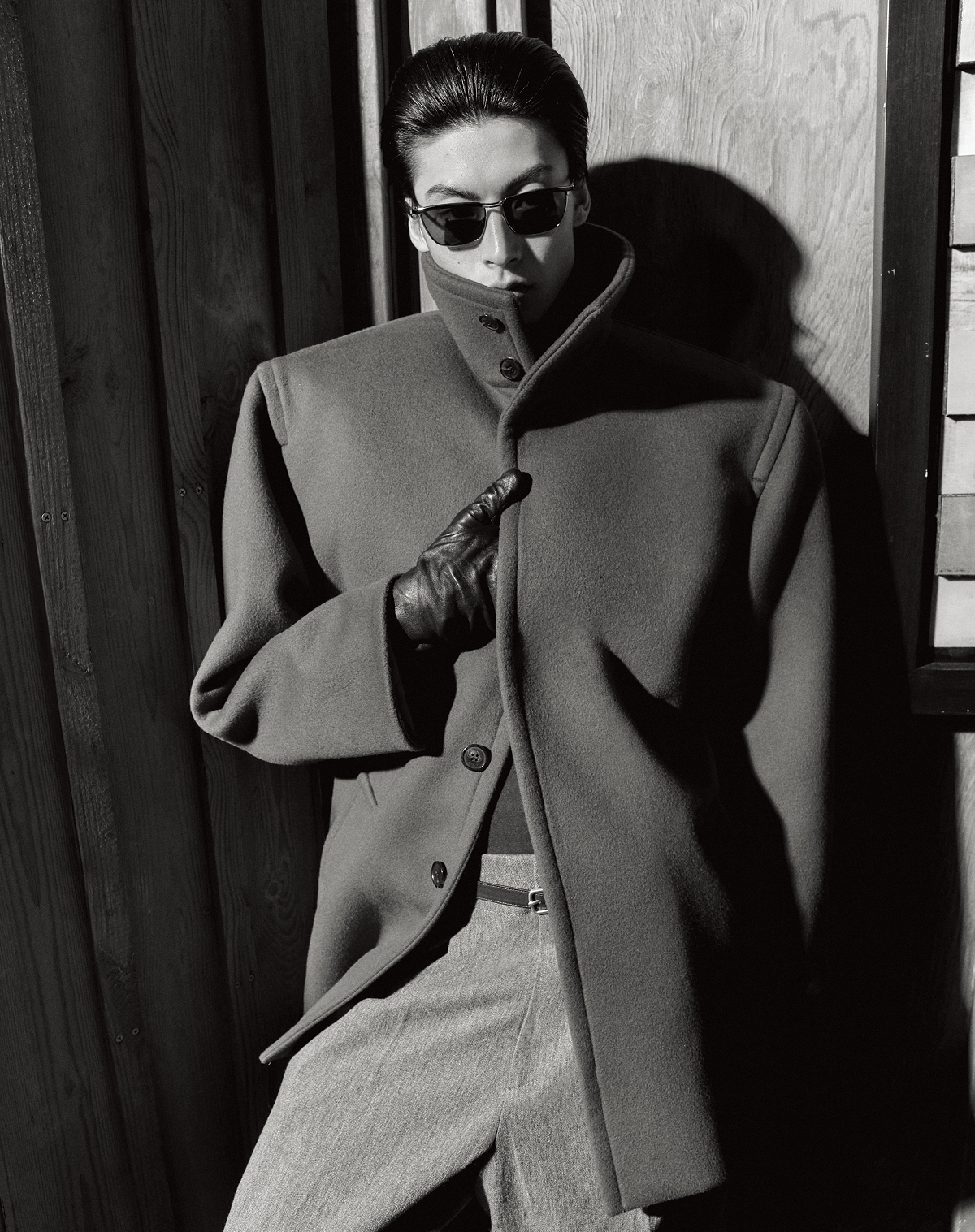 코트, 선글라스, 레더 글러브 모두 가격 미정 생 로랑 by 안토니 바카렐로. 팬츠, 벨트 모두 가격 미정 렉토. 니트 톱 에디터 소장품.