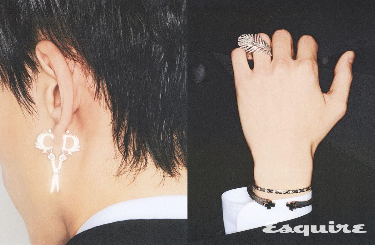데인저 스콜피온 이어커프 가격 미정 타사키. 재킷, 셔츠 모두 가격 미정 발렌티노.