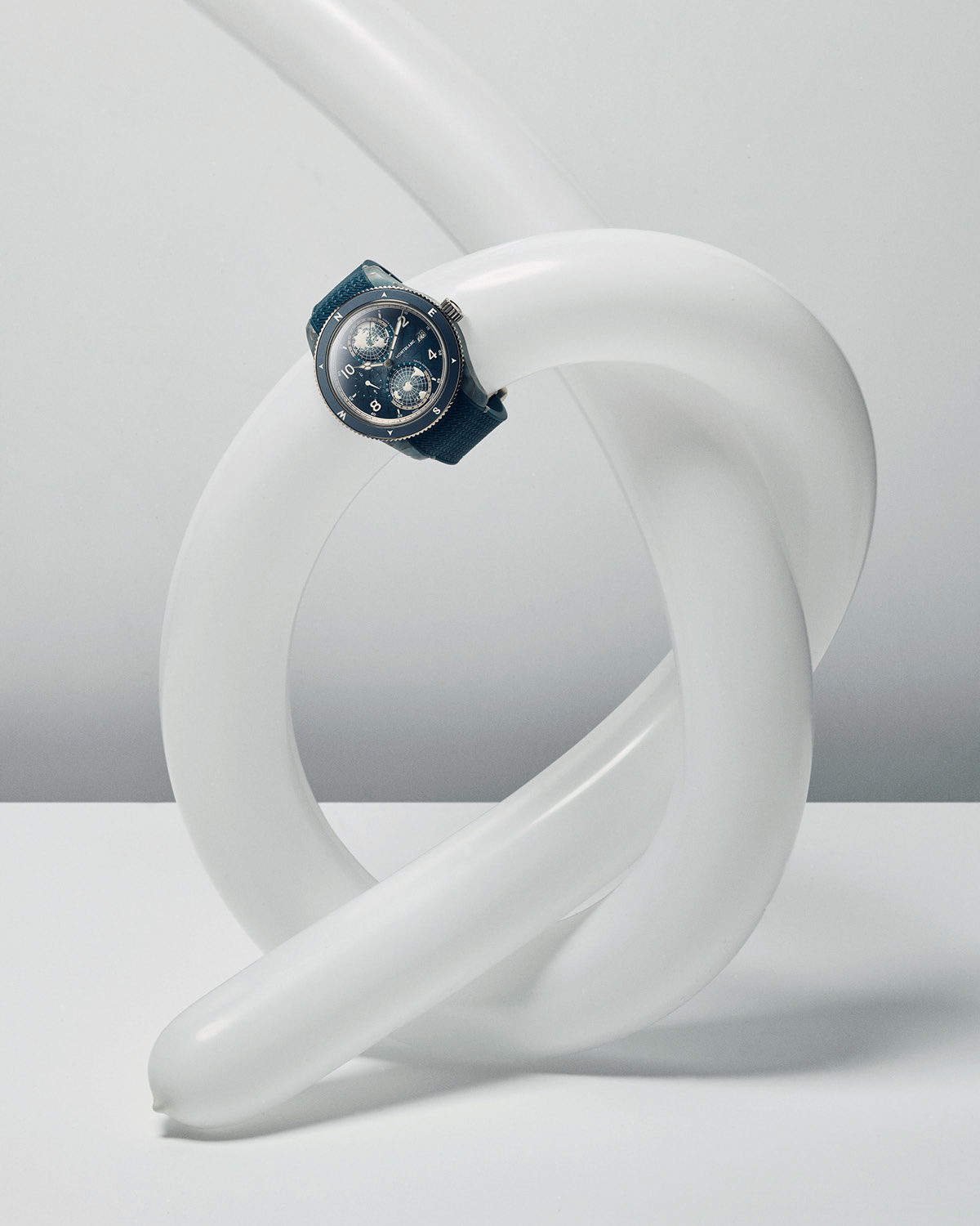 43.5mm 티타늄 케이스와 러버 스트랩의 몽블랑 1858 지오스피어 제로 옥시젠 마운트 빈슨 리미티드 에디션.