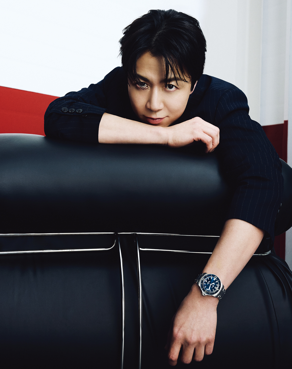 오팔린 다이얼과 문페이즈 디스플레이, 수퍼-루미노바® 야광 인서트가 적용된 날렵한 리프핸즈, 앨리게이터 레더 스트랩이 돋보이는 빌레레 컴플리트 캘린더 4450만원 블랑팡. 재킷 바라쿠타 by 샌프란시스코 마켓. 셔츠, 타이 모두 수박 빈티지.