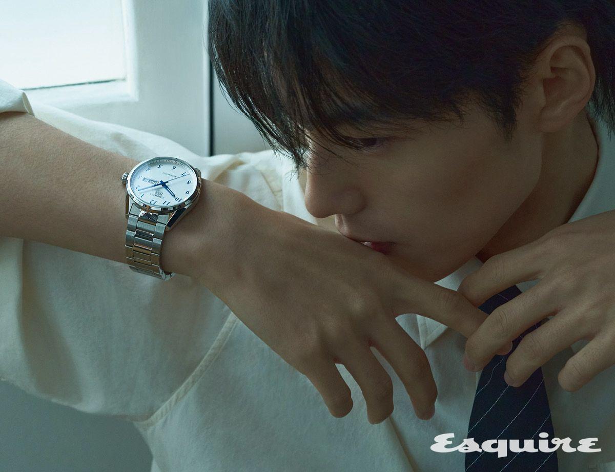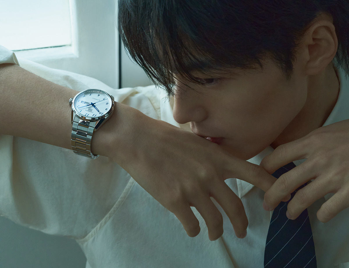 화이트 다이얼에 블루 인덱스와 핸즈를 더한 디자인의 까레라 데이 데이트 536만원 태그호이어. 셔츠 가격 미정 더 로우. 타이 에디터 소장품.
