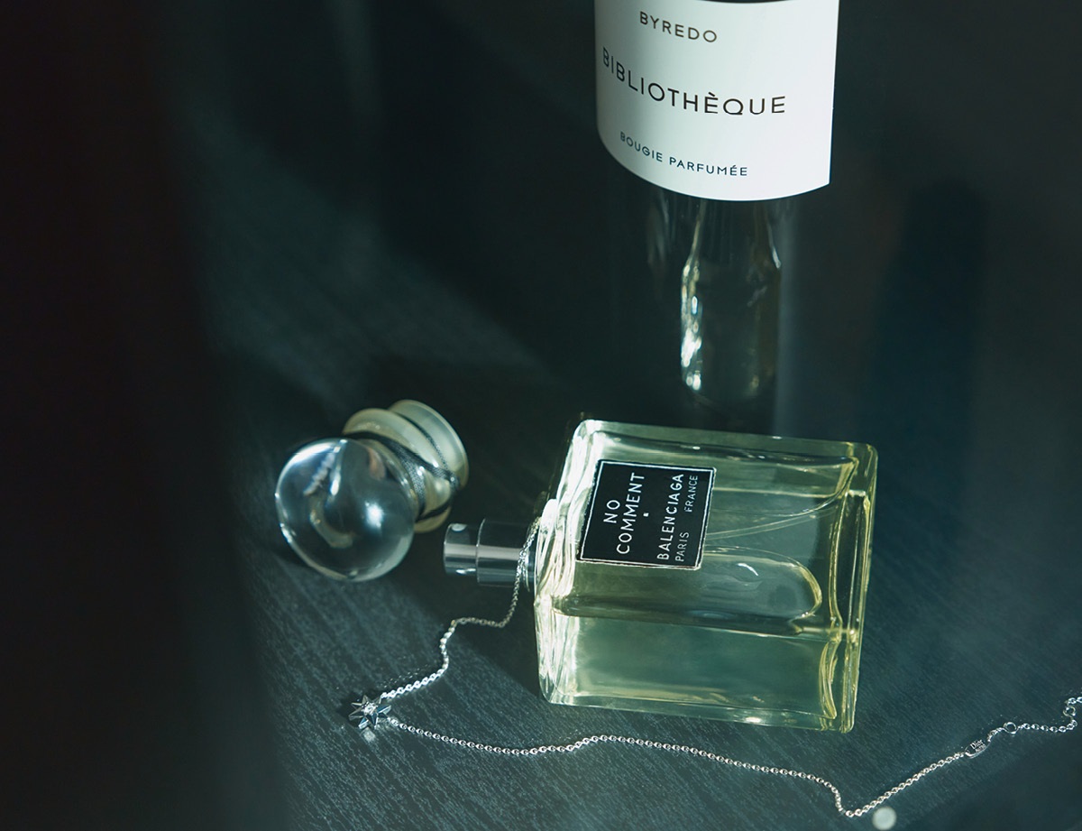 파촐리 노트 사이로 바닐라와 플럼이 은은하게 스미는 비블리오티크 프레이그런스 캔들 400g/20만8000원 바이레도. 우디 노트에 사이프러스 오일이 더해져 청량한 분위기를 만드는 노코멘트 퍼퓸 100mL/가격 미정 발렌시아가. 화이트 골드에 다이아몬드를 세팅한 에뚜왈 드 방 네크리스 가격 미정 디올 파인주얼리.